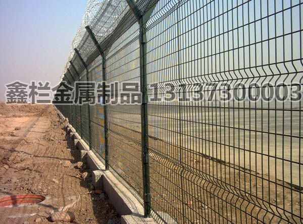 機場護(hù)欄網(wǎng)又稱作“Y型安全防御護(hù)網(wǎng)”、機場圍欄網(wǎng)、機場隔離柵、機場隔離網(wǎng),是安全防盜連接件和熱鍍鋅刀片刺繩組成是強度和安全防御性級別很高的護(hù)欄網(wǎng)產(chǎn)品。近年來,機場圍欄網(wǎng)被廣泛應(yīng)用在機場,軍事基地等高安全場所。(如果在機場護(hù)欄網(wǎng)頂部加裝刀片刺絲、刀片刺繩后又很好的增強了安全防護(hù)性能。)